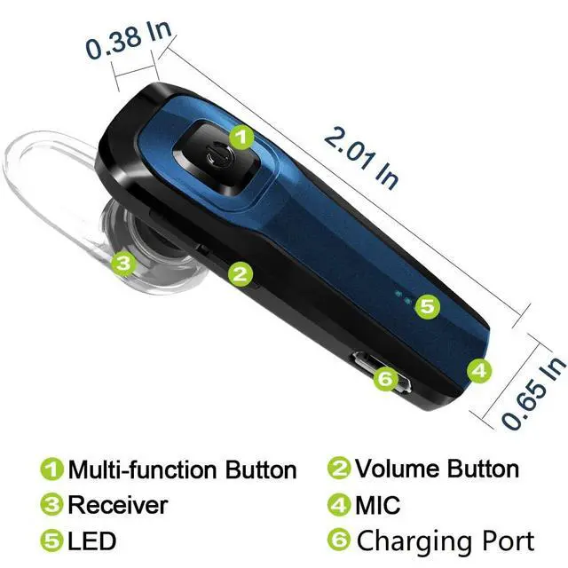 | Included Components | 1x Bluetooth Headset 1x USB charging cable 2x Ear hooks 2x Earbuds 1x User Manual 1x Standard box |