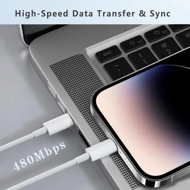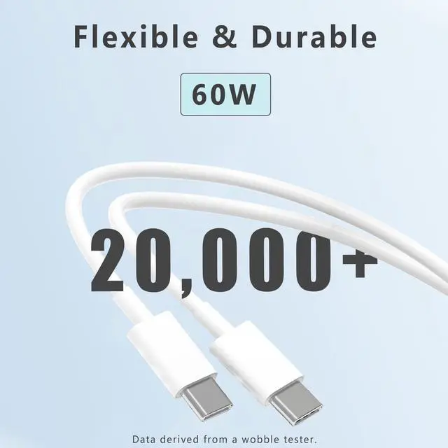 10FT Fast Charging USB C to USB C Cable - 60W Power Delivery, Supports PD 3.0 & QC 3.0, Tangle-Free, can withstand more than 15000 times bending life, will not break easily.
