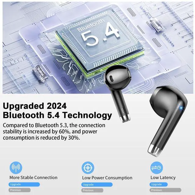 The Bluetooth earbuds uses Bluetooth 5.4 technology, which can stably connect to mobile phones, tablets, computers and other devices. The wireless headphones is equipped with high-fidelity audio technology, presenting high-fidelity sound effects, deep bass, clear treble, and an immersive listening experience. Built-in high-definition microphone, you can make clear calls even in noisy environments. Ergonomic design, light and fit the ear, no pressure to wear for a long time. Provide earplugs of various sizes to meet the needs of different users. Built-in large-capacity battery to meet the needs of all-day use. The surface of the headphones supports touch operation, which can easily realize functions such as play/pause, song switching, volume adjustment, answer/hang up calls, etc.