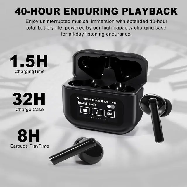 | Special Feature | LED Multifunctional Fullcolor Display, Smart ANC + ENC Noise Cancellation, IPX5 Waterproof Design, 40-Hour Marathon Battery and 3C Fast Charging, Advanced Bluetooth 5.4 |