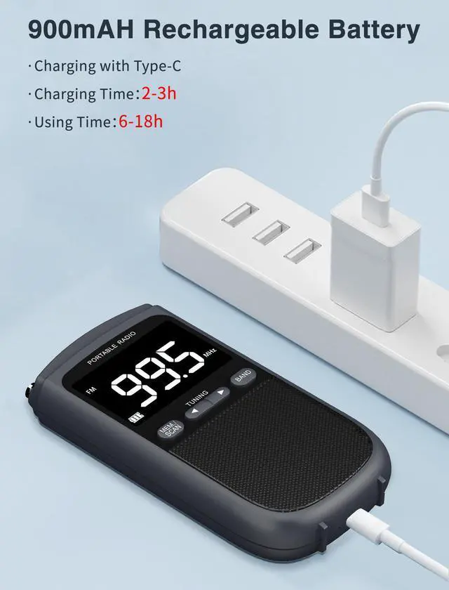 -900mAh Rechargeable battery-You can listen to the radio for up to 10 hours or more. Of course, you can also listen while charging and always keep listening to your favorite radio programs.No more frequent battery changes.
