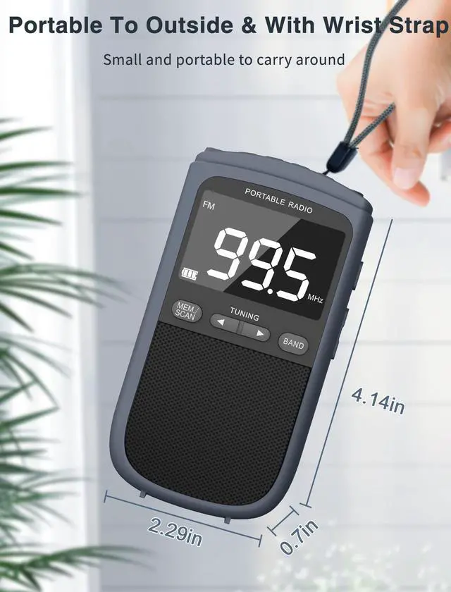4.1*2.3 inches compact size for running, camping, and other outdoor activities. Only a little larger than a credit card.This portable radio is suitable for your pocket and your package.