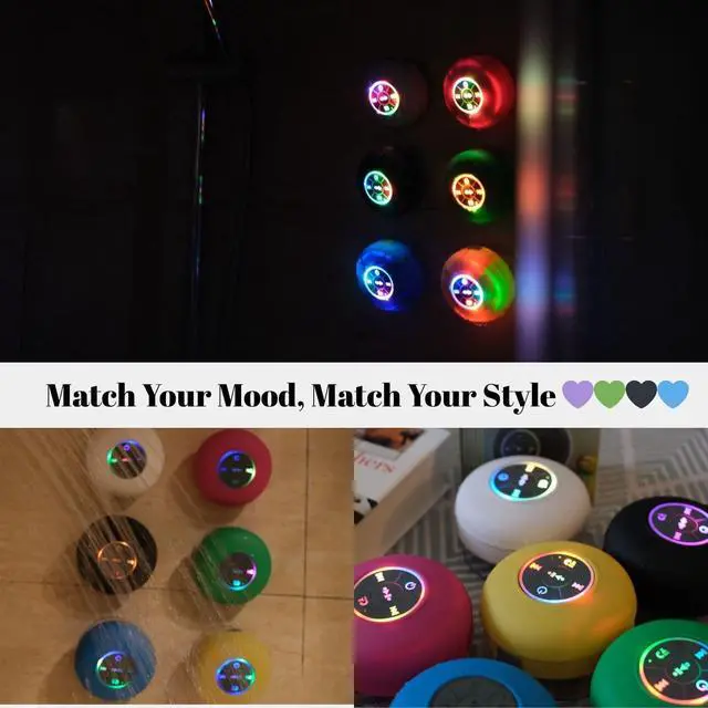 - What's in the box: 1. Suction cup LED flashing bluetooth speaker 2. Charging cable