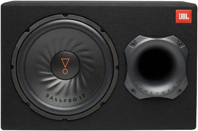JBL BassPro 12 delivers 150 Watts of powered noise-free deep bass thanks to JBL's patented Slipstream port technology. The Slipstream port is mathematically engineered to keep airflow with the port turbulence-free, which avoiding the common shortcoming of traditional ported boxes. Coupled with the built-in 150Wrms amplifier the BassPro 12 really delivers. Also the Bass Volume Remote control is included for easy adjustment, no more stopping to pop the trunk.