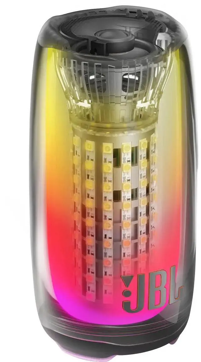 What truly sets the Pulse 5 apart is its customizable 360° light show. The transparent outer body radiates vibrant LED lighting that syncs to the rhythm of your music. Through the JBL Portable app, you can personalize colors, adjust patterns, and create unique visual effects to match the mood. From soft ambient glow to energetic pulse effects, the built-in lighting transforms any space into an immersive entertainment zone.