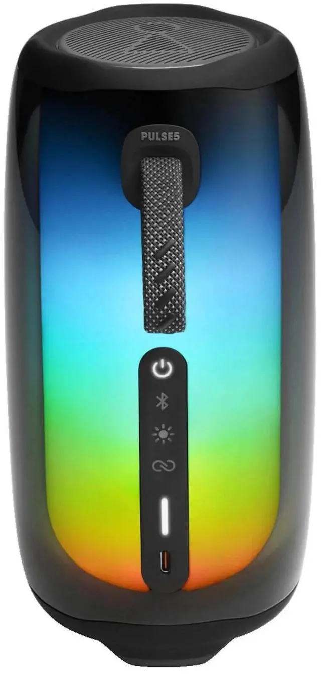 Finished in a sleek black design, the JBL Pulse 5 combines powerful audio performance with stunning visuals, making it an excellent choice for users who want both sound quality and a unique party atmosphere in one device.