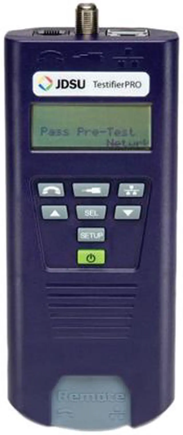 | Features | Identiies cable termination on active ports by blinking port LED Measures cable length using cable capacitance method Displays single-ended test results in wiremap format for opens, shorts, and split pairs Tests and displays in wiremap format shorts, opens, miswires, reversals, and split pairs with remotes Two-line, 16-character, back-lit, full alphanumeric LCD with icon flags Auto-off and timed backlight in any mode for low power consumption and long battery life |