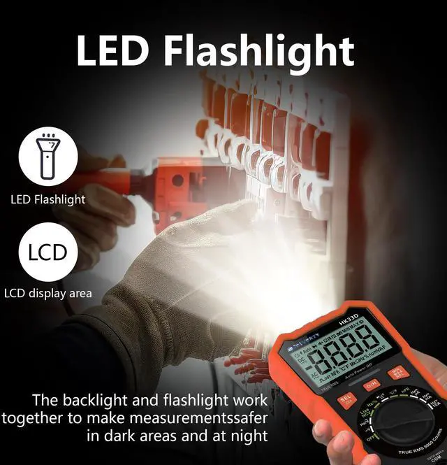 Large backlight LCD screen with flashlight for easy low-light reading.