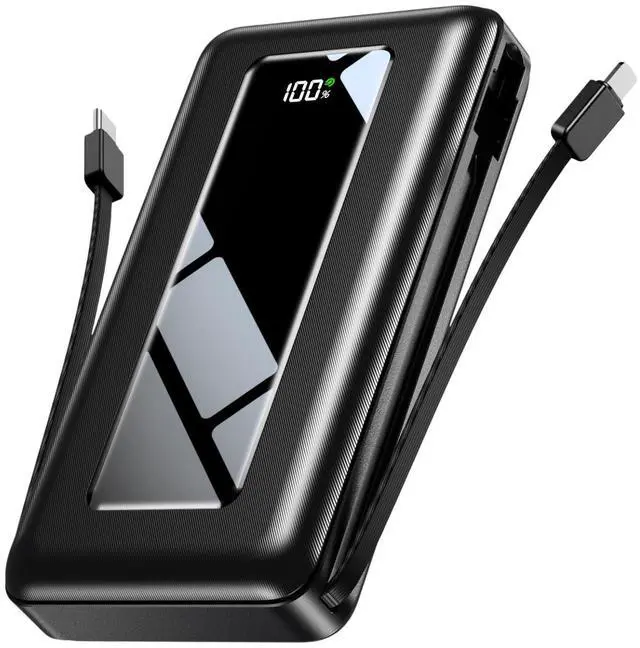 Power Bank, 50000mAh Portable Charger, Travel Camping Essential Battery Pack with Built-in Cables, PD 22.5W Fast Charging, Large Capacity Portable Phone Charger, Jet Black