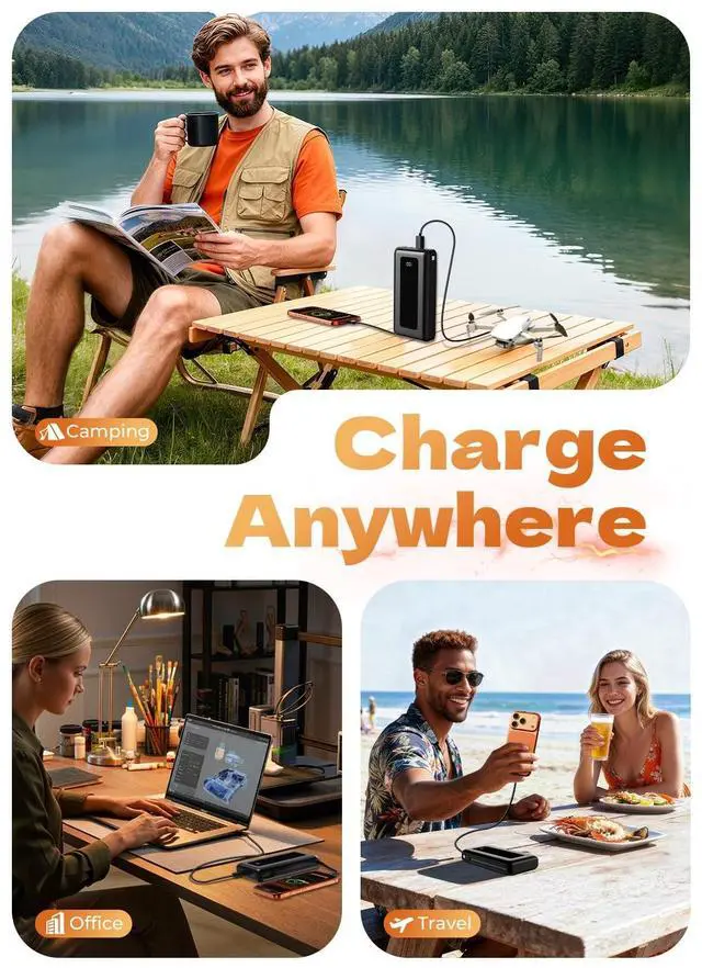 50000mAh Capacity Built for Extended UseEngineered for reliability, this 50000mAh power bank delivers long-lasting power for travel, camping, and emergency situations. Its ultra-large capacity ensures you stay charged throughout your journeyskeeping your iPhone, iPad, and other devices powered whenever you need them. A premium portable charger designed to support days of uninterrupted use and dependable performance in any situation