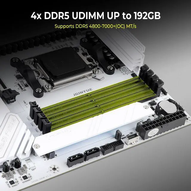 Memory slot : Supports 4x DDR5 UDIMM, maximum memory capacity of 192GB, memory support DDR5 4800-7000+(OC) MT/s, Ryzen 8000 series processor maximum overclocking frequency: maximum speed up to 7000+MT/s * [1DPC 1R dual channel with two single-sided granular memory inserts]