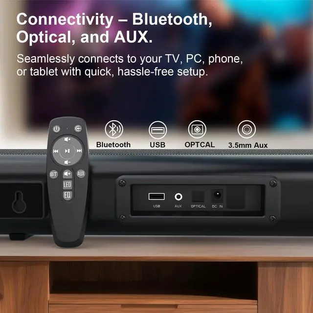 This soundbar is crafted with high-quality materials and advanced audio technology, ensuring durability and superior performance. The precision engineering delivers clear, balanced sound with deep bass and crisp highs, enhancing your audio experience