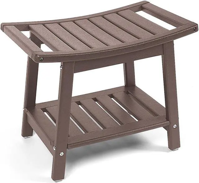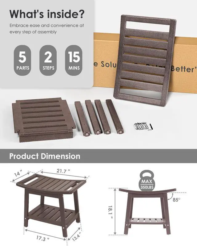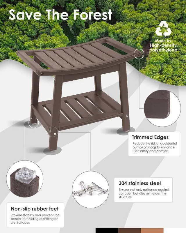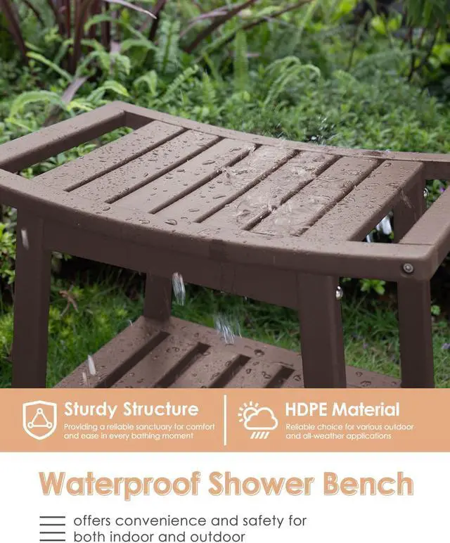 DURABILITY MATERIAL: Crafted from True High-Density Polyethylene (HDPE), the shower bench guarantees excellent water resistance and efficient water drainage through its slatted surface. Unlike bamboo or teak benches, it avoids issues like chipping, peeling, or rotting, making it a durable and low-maintenance choice.