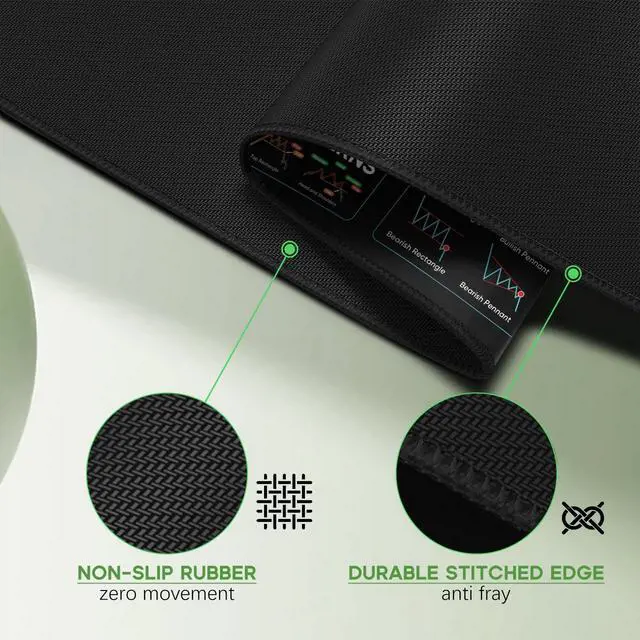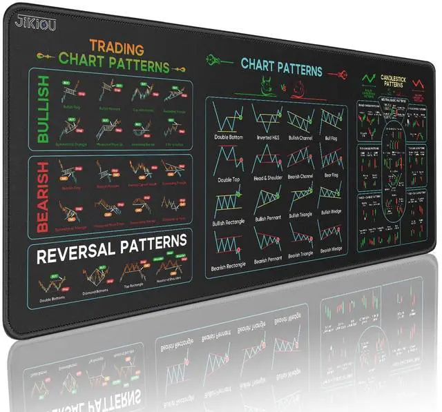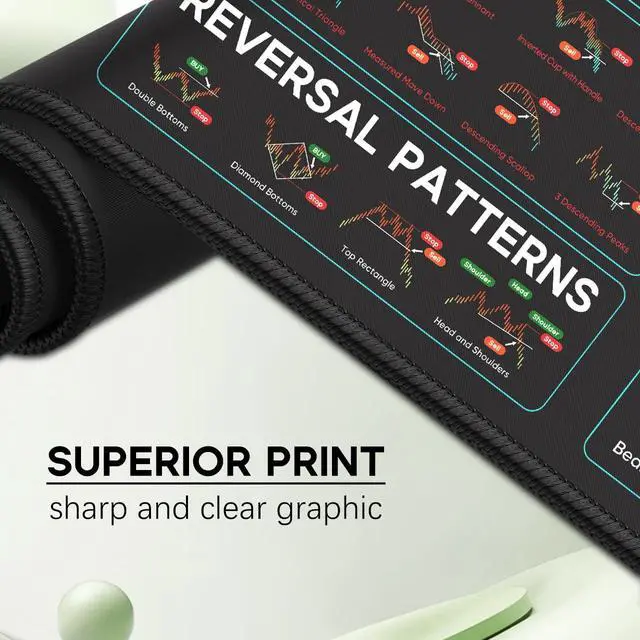 Stock Market Invest Day Trader Trading Mouse Pad Chart Patterns Cheat Sheet, X-Large Computer Mouse Pad/Desk Mat with Stitched Edges 31.5 x 11.8 in