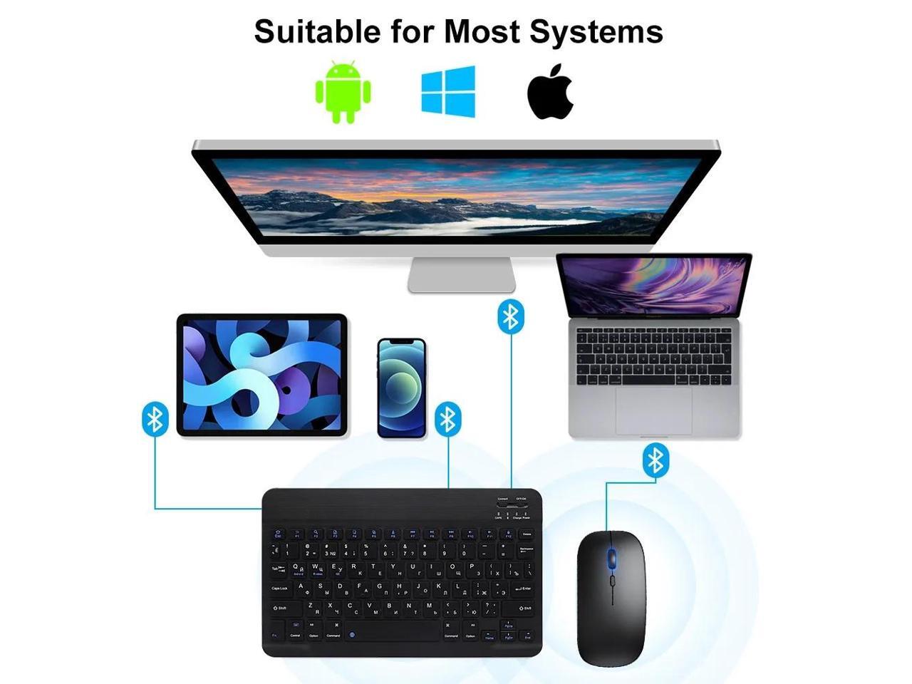- Excellent Compatibility: The Bluetooth keyboard compatible with iOS, Android and Windows system. It is perfect for Apple iPhone, iPad, iPad Mini, iPad Pro, iPad Air, Android Samsung LG Windows tablet smartphone.
