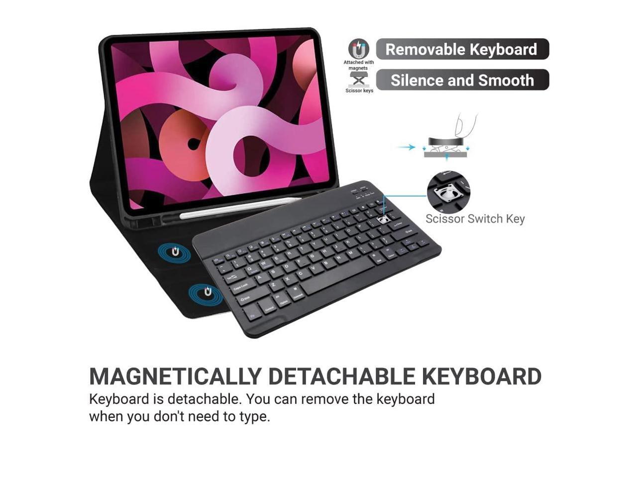 - Comfortable Bluetooth Keyboard: The keys of the keyboard are scissor structure, square chocolate keycap ergonomic design.