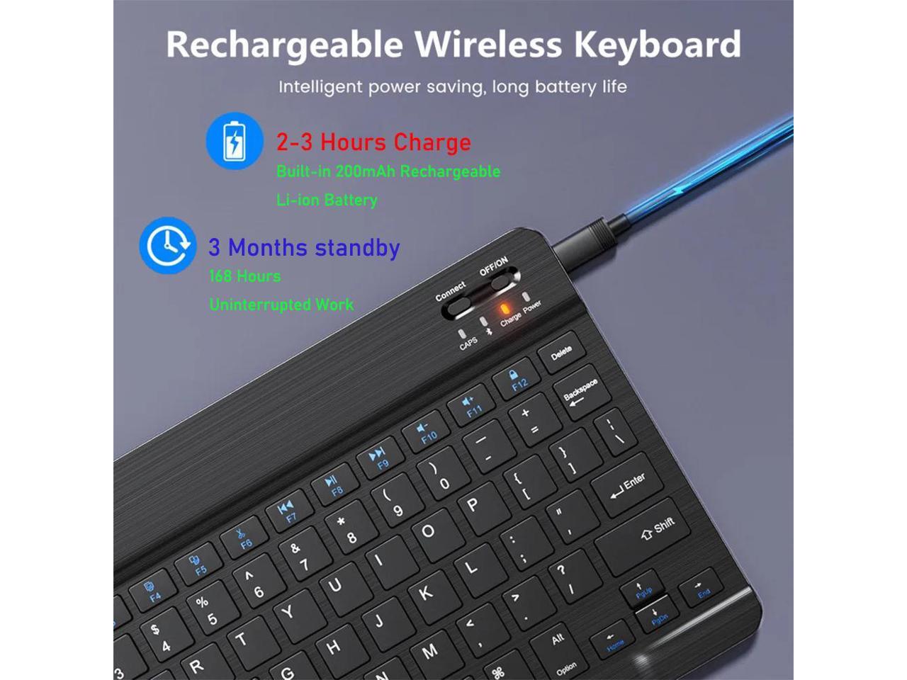 JIMTAB Ultra-Slim Bluetooth Keyboard 10 Inch Portable Mini Wireless Keyboard Rechargeable for Apple iPad iPhone Samsung Tablet Phone Smartphone iOS Android Windows