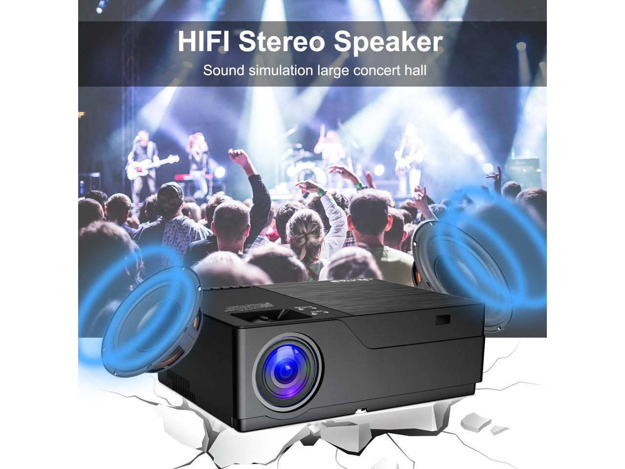 - [VERSATILE MULTIMEDIA CONNECTIVITY] - This HD projector supports HD/ SD/ USB/ AV/ VGA/ AUDIO OUT. M18 multimedia projector designed with dual HDMI and dual USB interfaces. USB can easily connect to mobile phones and smart devices for same-screen playback and multi-screen broadcast.HDMI can be connected to laptop, computer or other home hd audio device.