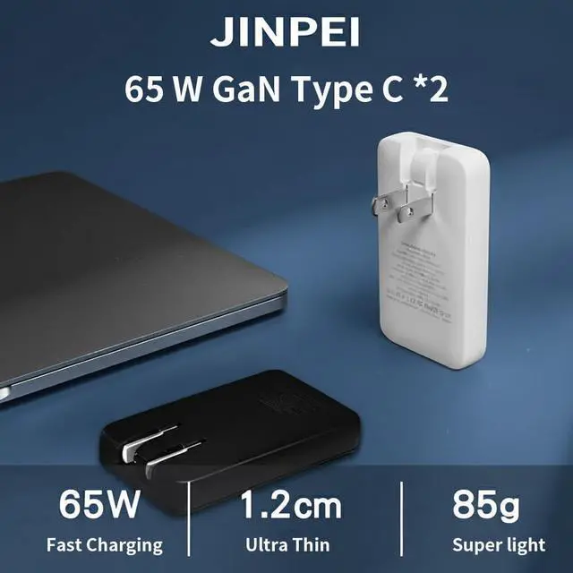 Revolutionized Fast Charging GaN III Technology The 3rd generation semiconductor material Gallium Nitride features fast switching speed, small size, high efficiency and fast heat dissipation. With elegant compact size with foldable plug, JINPEI GaN charger is your best choice for travel, saving you from cord clamp trouble with design of 3-Port output in one small size charger block providing fast charge for 3 devices at same time.