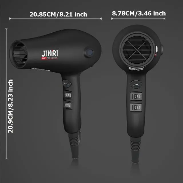 Engineered for stylists and home users alike, the JINRI 2000W Hair Dryer combines robust performance with advanced hair care technology. Its high-torque motor generates powerful airflow to dry thick hair rapidly, while dual negative ion and infrared systems work synergistically to seal cuticles, reduce static, and maintain natural hair moisture for frizz-free shine.