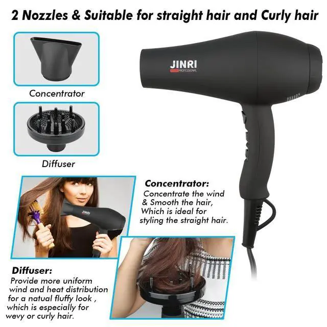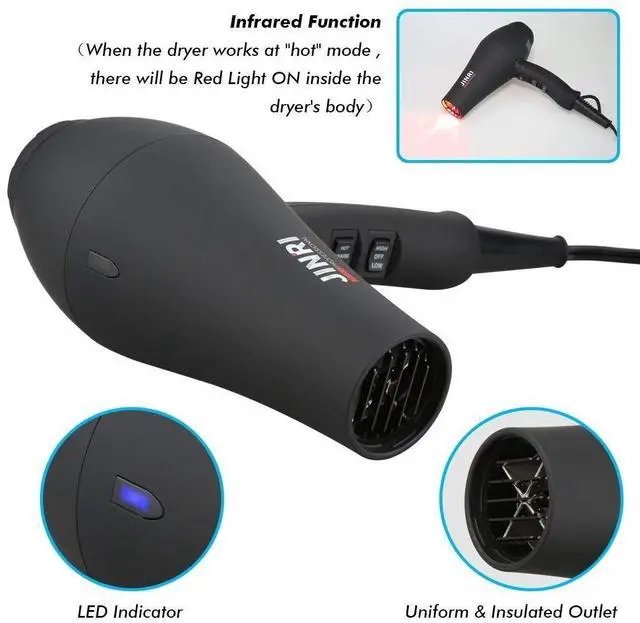Engineered for stylists and home users alike, the JINRI 1875W Hair Dryer combines robust performance with advanced hair care technology. Its high-torque motor generates powerful airflow to dry thick hair rapidly, while dual negative ion and infrared systems work synergistically to seal cuticles, reduce static, and maintain natural hair moisture for frizz-free shine.