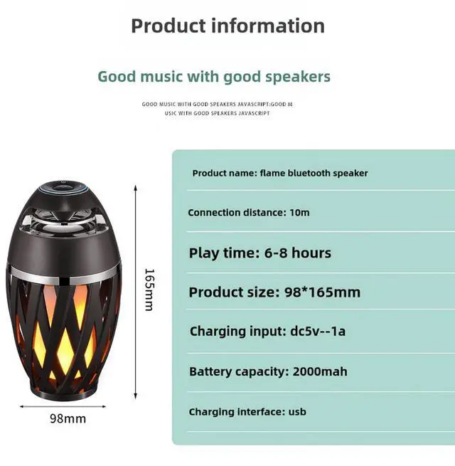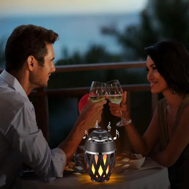 Outdoor Flame Bluetooth Speaker: The Flame Speaker and Light combines excellent audio capabilities with beautiful lights that flicker and move like dancing flames. Bluetooth effective connection distance is about 32 feet, enjoy wireless freedom just like dancing.Portable Design: Compact and lightweight, this Bluetooth speaker is designed for your on-the-go lifestyle. Carry your music with you wherever you go - be it your kitchen, beach, or a picnic.