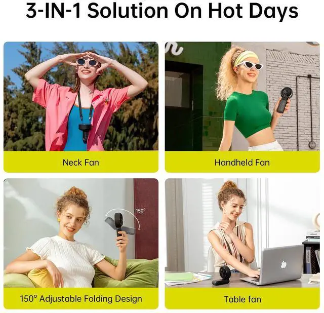 With its versatile 3-in-1 design, this fan can be used as a handheld, desk, or neck fan, adapting to any situation.