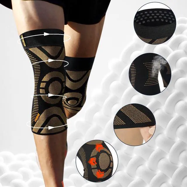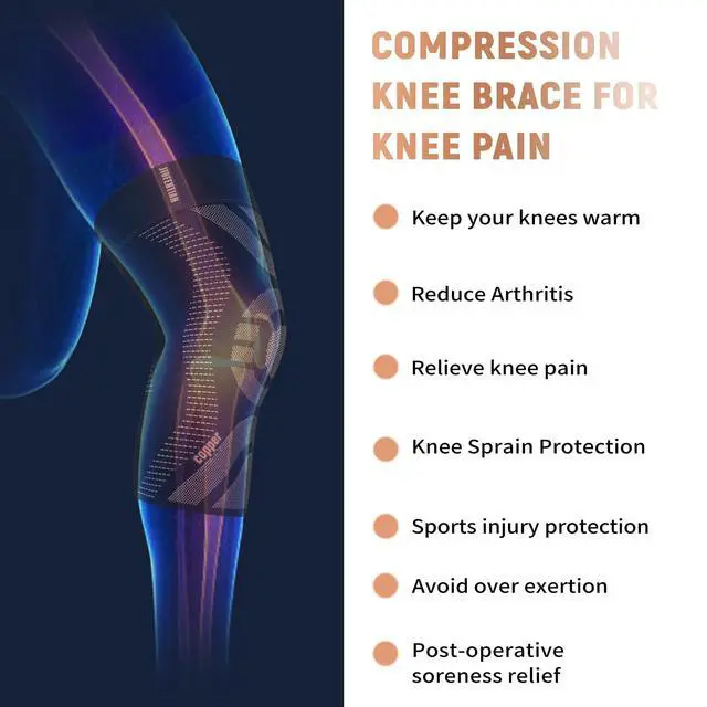 SUPPORTUtilize our compression knee brace to alleviate knee pain, especially from arthritis, aging joints, meniscus tears, and post-operative discomfort, preventing sports injuries like knee strains and ligament tears.