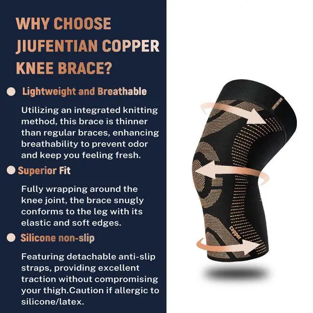 COPPER NYLON:60% copper nylon fabric,and by compressing your arteries and veins, circulation increases, getting additional oxygen to your knees and reducing pain.Notice the difference after just a short time wearing the knee brace for women & Men.Say goodbye to knee pain.