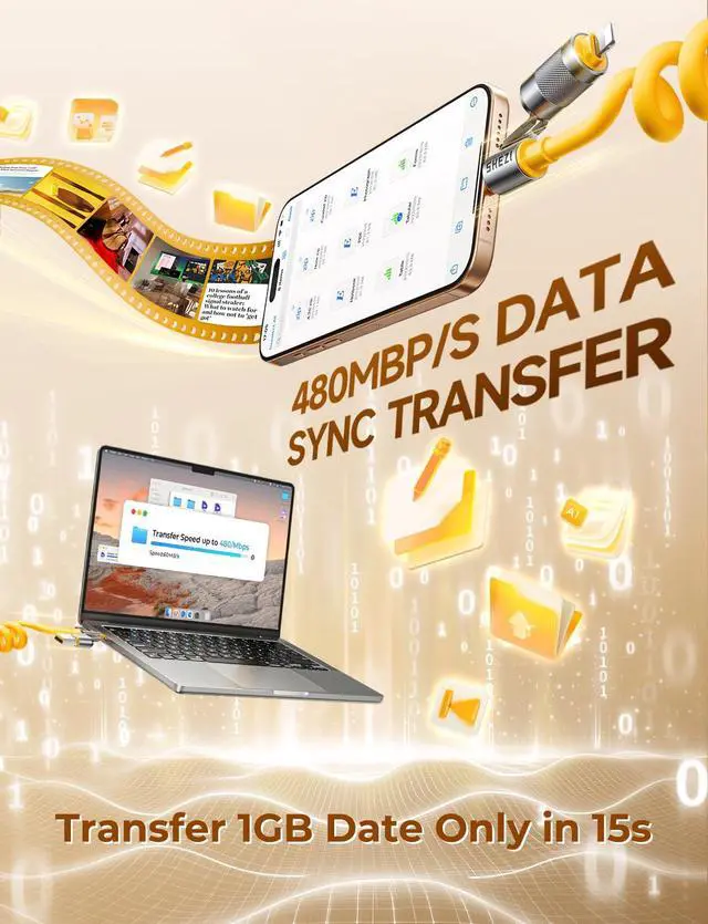 High-Speed Data Transfer: Experience a data transfer revolution, as it blazes through files at an astonishing 480 Mbps, making every transfer instantaneous. Whether you're a busy professional on the go, a content creator needing to move large media files quickly, or a student transferring coursework, this usb c compatible with Lightning cable is your digital expressway