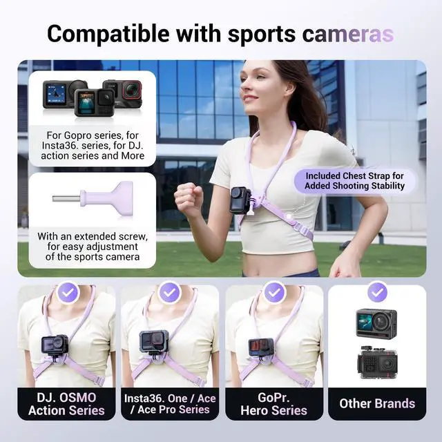 Neck Phone Holder x1, Velcro Chest Strap x1, Metal Ring Kit x1, Safety Strap x1, Long Thumbscrew for Gopro x1