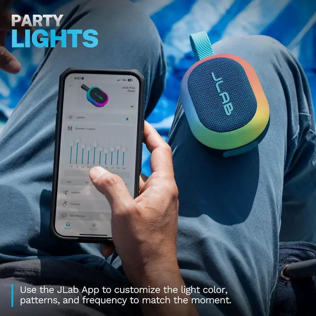 Add color to your music with vibrant RGB lighting. Use the JLab App to customize the light color, patterns, and frequency to match the moment. Whether youre jamming solo or lighting up the night with friends, Pop Party sets the vibe.