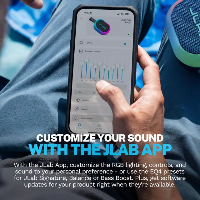 With the JLab App, customize the RGB lighting, controls, and sound to your personal preference - or use the EQ4 presets for JLab Signature, Balance or Bass Boost. Plus, get software updates for your product right when they're available.