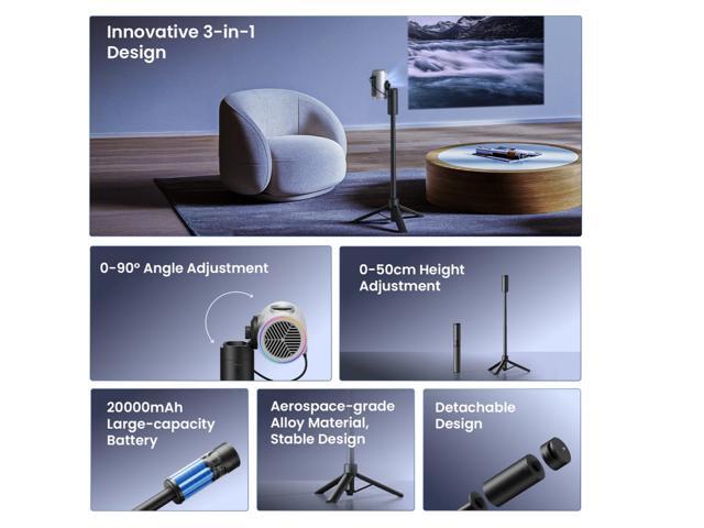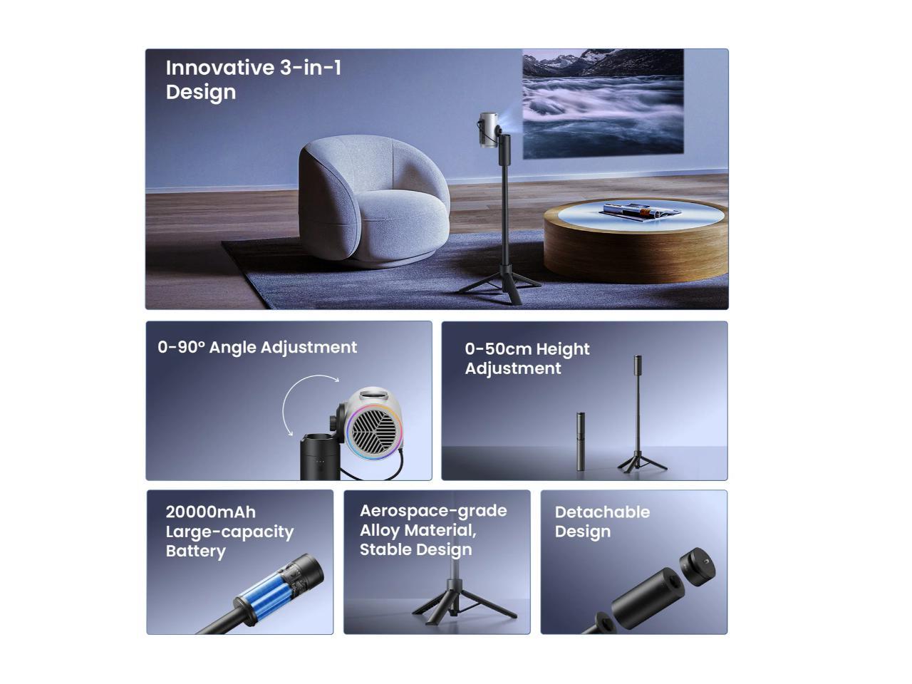 JMGO 3-in-1 Power Bank Tripod-Projector Stand for PicoPlay 20000mAh 65W Large Capacity, Black
