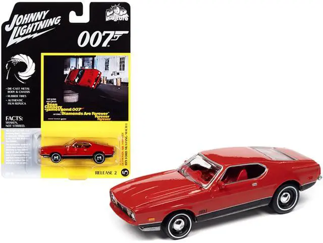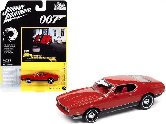 Brand new 1/64 scale diecast car model of 1971 Ford Mustang Mach 1 Bright Red with Black Bottom (James Bond 007) "Diamonds Are Forever" (1971) Movie "Pop Culture" Series 2 die cast model car by Johnny Lightning.