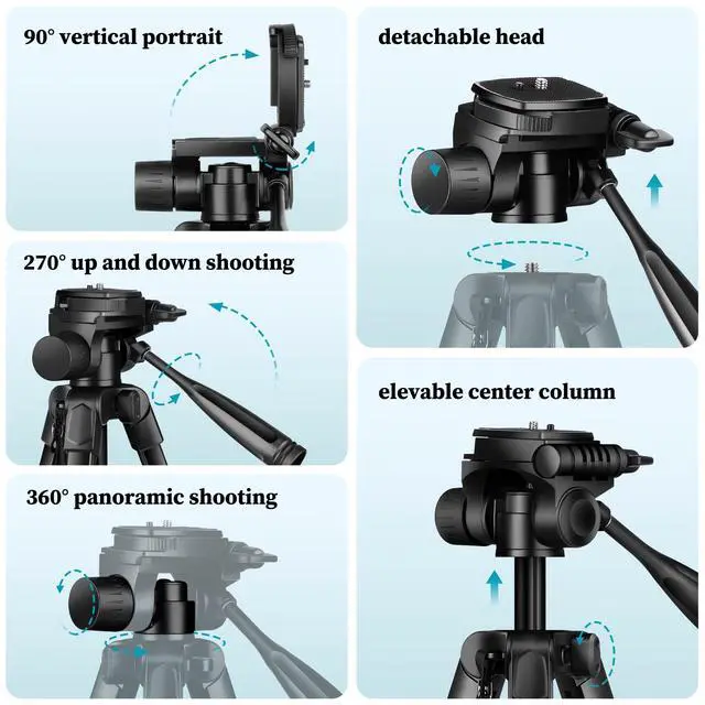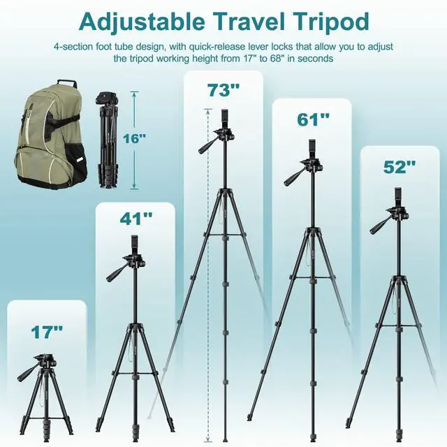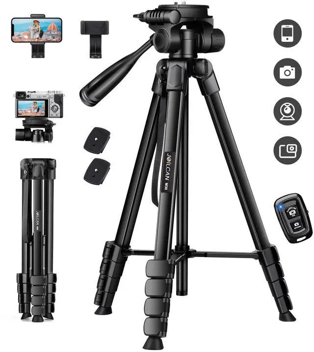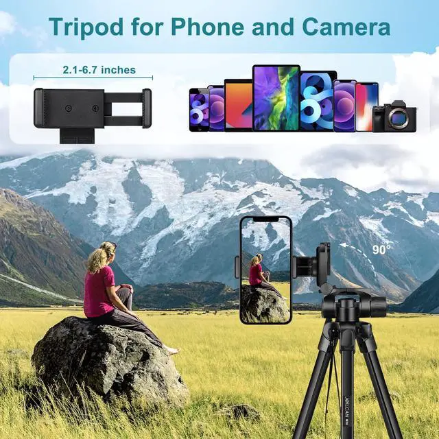 Tripod for Phone & CameraPhone Tripod stand with an additional quick-release plate and phone holder maximizes compatibility to the greatest extent. The 360° phone mount is compatible with iPhone 17 16 15 14 13 12 11/11 Pro/XS Max/XS/XR/X/8/8 plus/ Galaxy Note 9/S10/S20. Phone Tripod with a standard 1/4" screw mount compatible with all cameras (Nikon D3500, Fujifilm X-T200, Canon EOS 250D, Olympus, Panasonic), DSLR, SLR, webcams, digital cameras, projector, ring light.