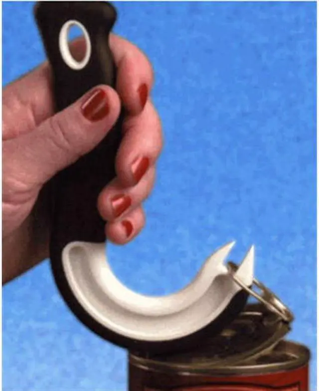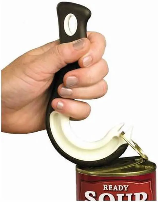 This Jokari Ring Pull Can Opener Constructed from a durable plastic with a non slip grip coating. A fantastic kitchen gadget for opening all ring pull top cans or beverage cans. Can also be used to break the vacuum seal on jars so it they are easy to open. A great aid for individuals with arthritis the elderly or anyone who does not have the strength or dexterity to remove lids. Ring Pull Can OpenerOpen ring pull cans with ease. No more broken nail worries. This fantastic gadget is friendly to those who have arthritis and do not have much strength. Non-slip grip handle for added comfort.