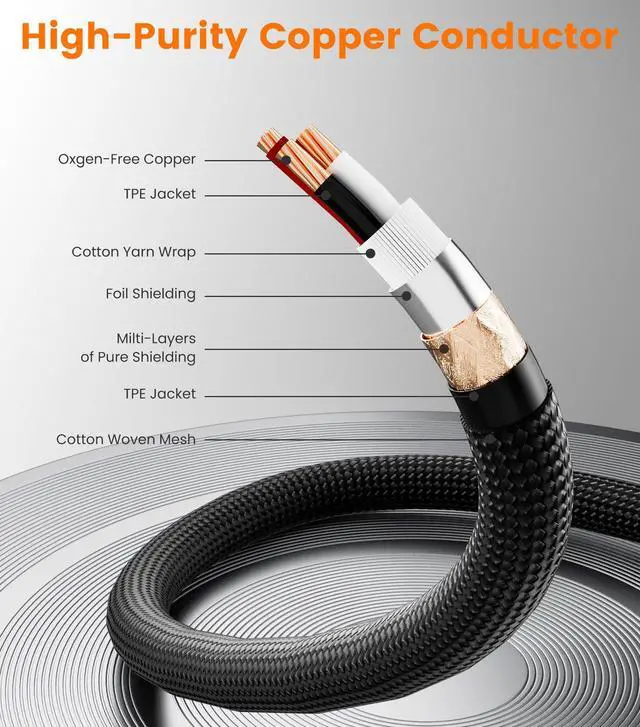 The 1/8 inch male to XLR male cable is made of 20 AWG 4N Oxygen Free Copper, with shielding, which can ensure high fidelity sound quality and provide maximum conductivity and signal clarity. A great choice for music lovers.