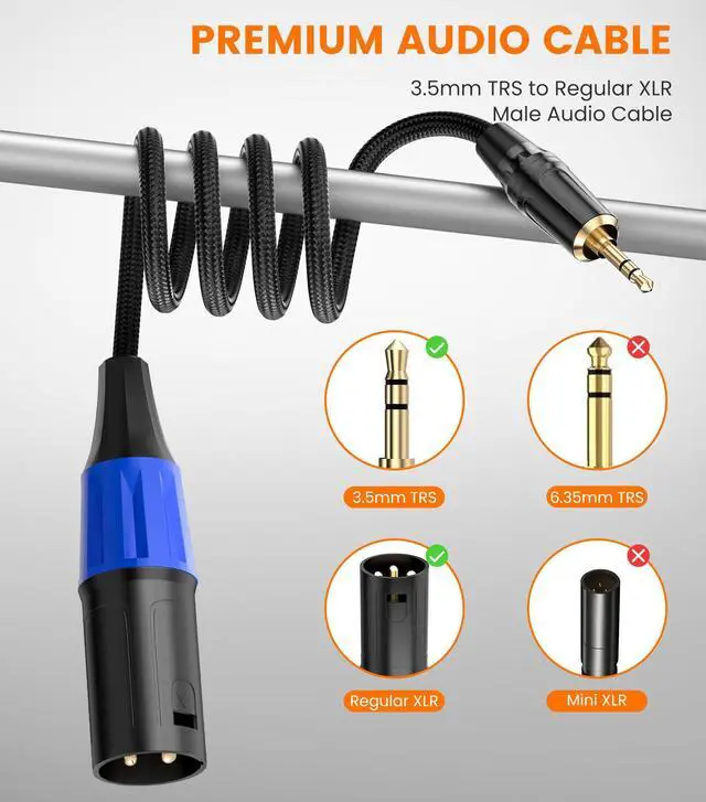 3.5mm (1/8 inch) TRS to XLR Male Cable, Unbalanced 3.5mm Mini Jack to XLR Male Microphone Cable