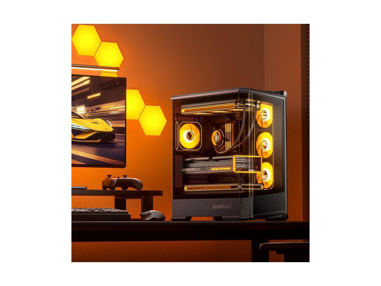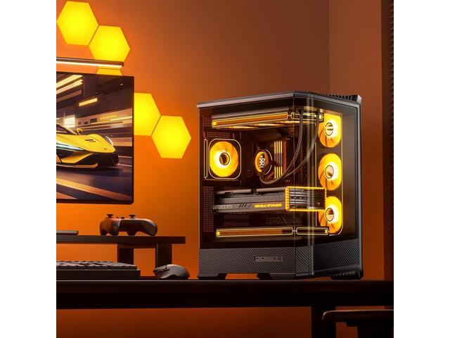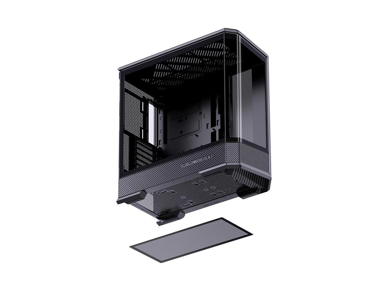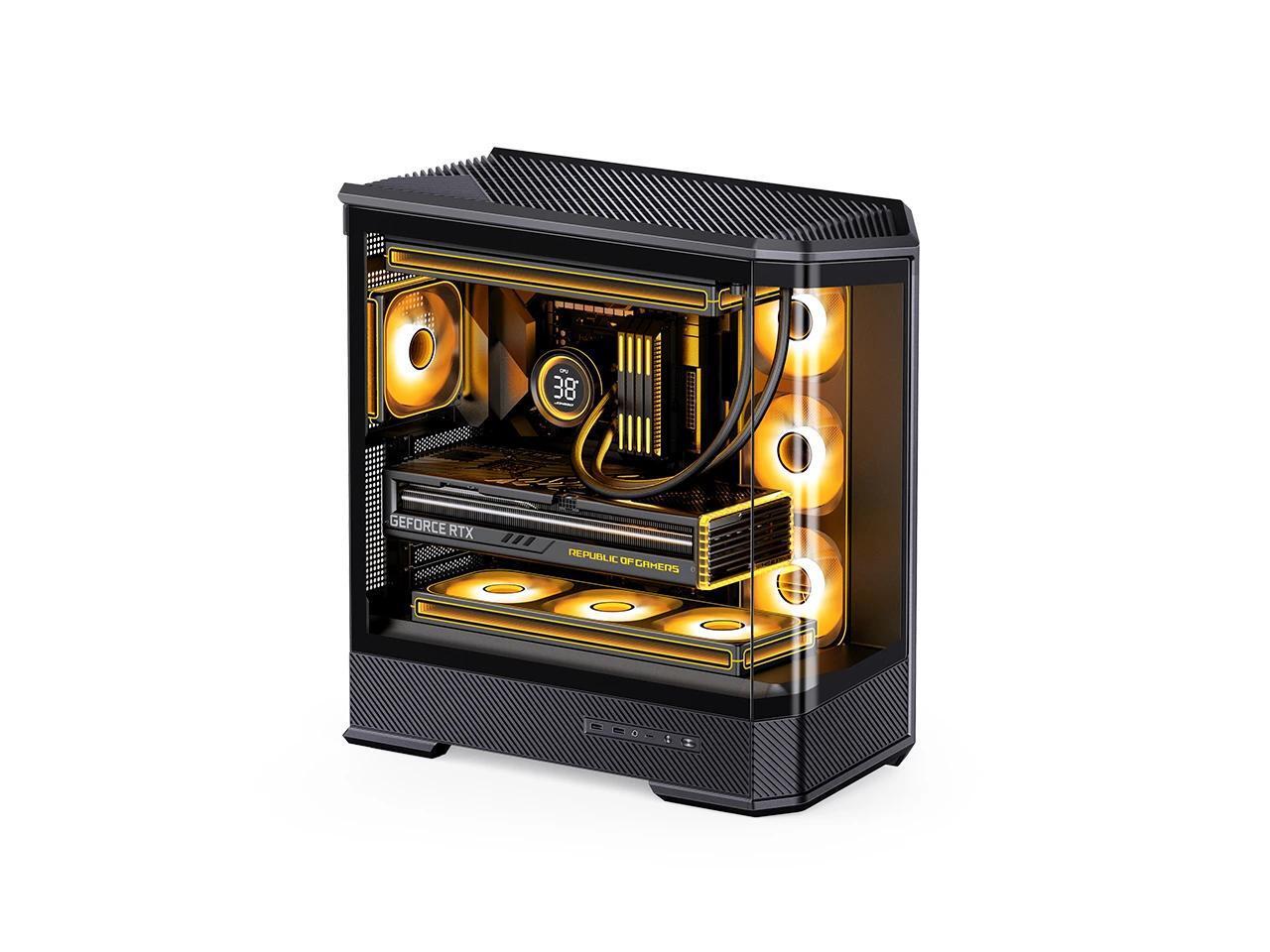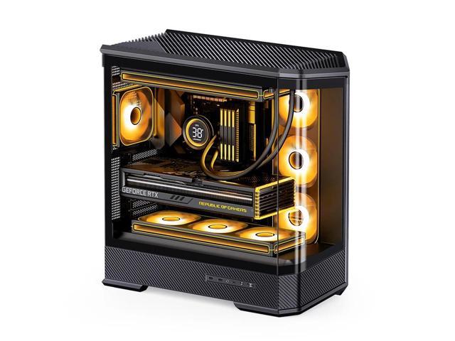 JONSBO D400 BLACK ATX PC Case, Supports ATX / M-ATX / ITX MB, Golden-Ratio 3D Shape Design, Integrated Cured Tempered Glass, Desktop Case,SP Back-connect MB/Vertical GPU/AIO360,Multi Fan Bays, Black