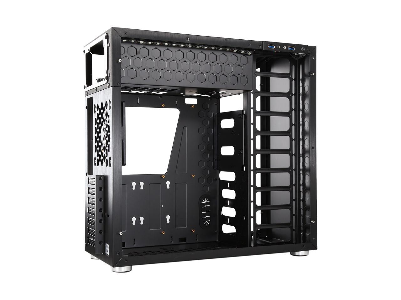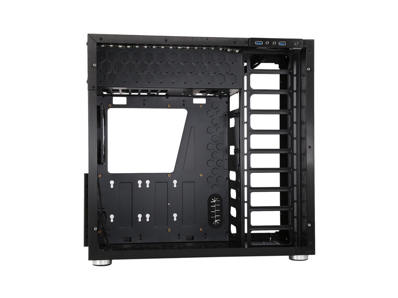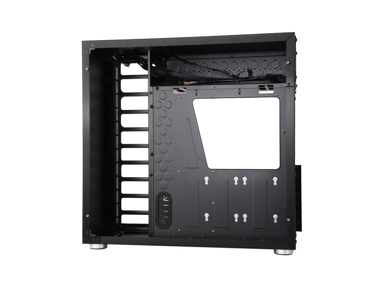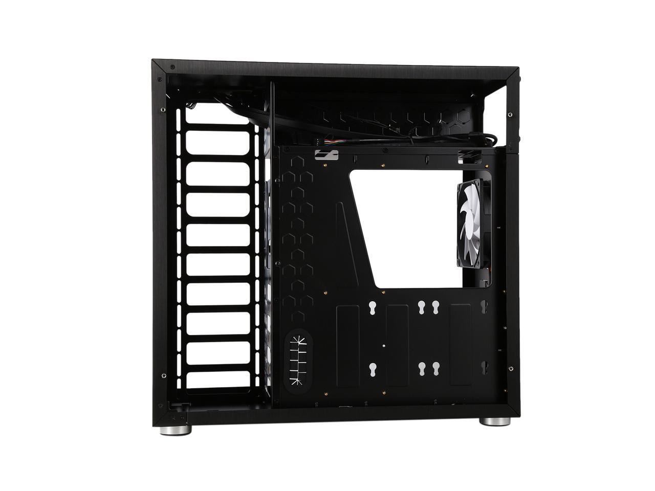 The mid-tower Jonsbo C4 catches eyes at the first sight, featuring clean front panel design, all black interior, and tempered glass panels on both side. Its interior provides adequate space to support ATX motherboard, CPU cooler up to 167mm in height, VGA card up to 300mm long, and up to seven expansion cards. In terms of cooling, the C4 supports three 120mm intake fans at front left side (behind the left glass panel), two 120 intake fans at the bottom, and one 120 rear exhaust fan (included), and features six precision cuts on the right glass panel to ensure advanced air circulation. Water cooling radiator can also be installed. The power button, two USB 3.0 ports and two audio jacks are located at the top of the left panel for easy access, as well as preserving the clean look of the front panel.