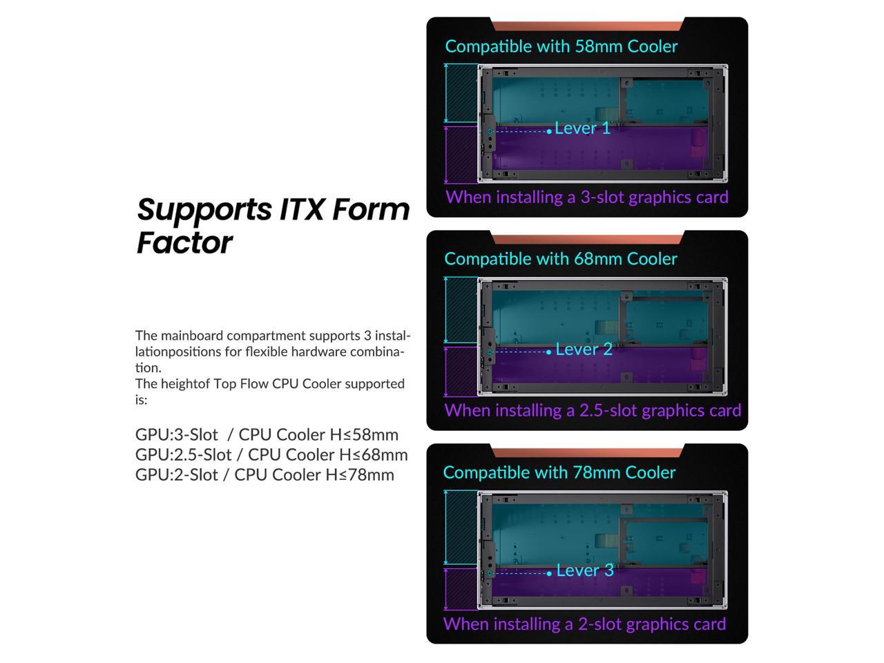 Support SFX100mm/GPU 202mm-310mm/Air Cooler 58mm-78mm