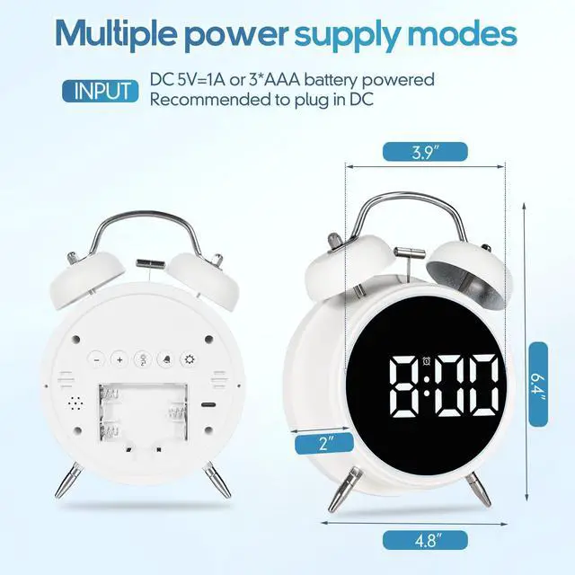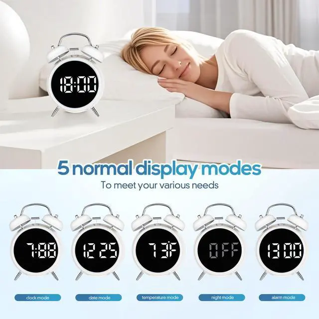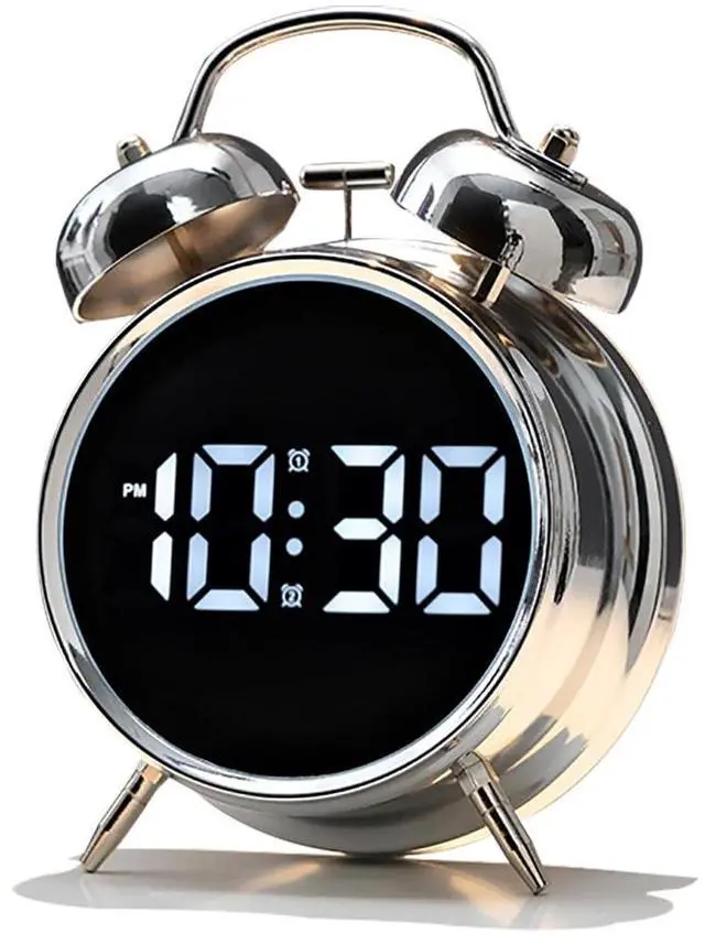 - Classic bell alarm clock with a minimalist and stylish digital display, featuring a backlit design for clear visibility of the time. The loud ringing alarm ensures it wakes up even the soundest sleepers.
