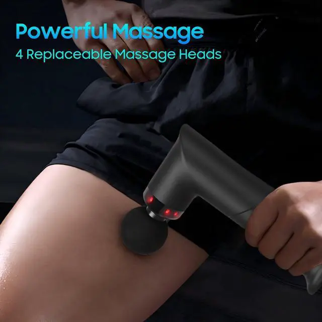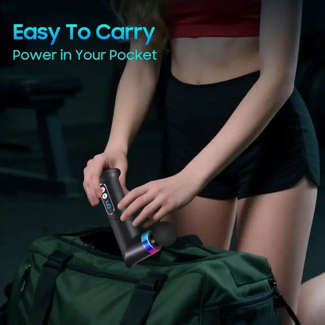 This massage gun is the ultimate solution for muscle relief, offering powerful deep tissue massage in a portable, stylish package. Designed with convenience in mind, this mini massage gun is compact and easy to carry, making it perfect for travel, the gym, or at home. Whether you're seeking relaxation after a workout or relief from muscle tension, this small massage gun provides an effective and efficient way to soothe your muscles on the go. The massage gun is equipped with multiple intensity settings, allowing you to customize your massage experience to your needs, whether you're looking for a gentle relaxation or a more intense massage gun deep tissue treatment. The sleek design is complemented by a cool LED light strip at the head of the massage gun mini, adding a modern touch to your massage routine. This light strip shines brightly, making the massage gun not only a functional tool but also a stylish accessory that enhances your overall experience. The small massage gun delivers deep tissue benefits, helping you relieve soreness and tension in your muscles. It's especially useful after a workout, offering powerful relief for sore muscles and aiding in recovery. Whether it's for a back massage, shoulder tension, or full-body relaxation, this massage gun deep tissue provides targeted relief. The compact design makes it easy to take with you anywhere, offering a portable solution for everyday muscle care. With its lightweight, handheld design, this massage gun mini is easy to use, making it an essential part of your wellness routine. Ideal for relieving muscle fatigue, the massage gun is perfect for anyone who wants an effective and convenient solution for muscle recovery. The electric back massagers feature ensures that you can target specific areas of discomfort, whether you're using it at home, at the office, or while traveling. The handheld massage gun is a must-have for anyone seeking to relax and rejuvenate their muscles, providing deep tissue benefits in a compact, stylish package that fits perfectly into any lifestyle.