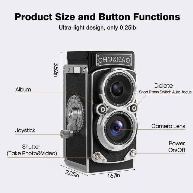 This TLR (twin-lens reflex) style retro mini camera, perfectly blending the classic and nostalgic vibe with a brand-new shooting experience, effortlessly captures the moments of life. Bring it along and embark on your creative journey!