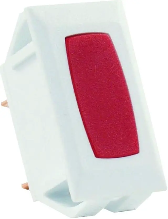 12 Volt; 10 Amp At 14 Volt DC; 1.125 Inch x 0.550 Inch Cutout; 1.120 Inch x 0.547 Inch (Switch); Red Illuminated Light; White