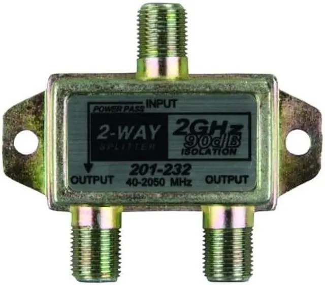 2-WAY 2 GHz. HD/SATELLITE LINE SPLITTERThis splitter is used for multiple TV installations. It is rated at 2 GHz and will work with any F-Style coax connection. Recommended for HD/Satellite installations. Packaged. MFG# 47355 UPC# 756815473552