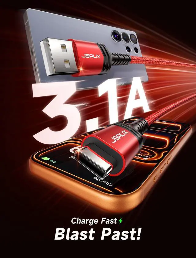 ![Alt view image 6 of 7 - USB C Cable [2-Pack 15ft], USB A to USB Cord Fast Charging for iPhone Air, iPhone 17, iPhone 17 Pro, iPhone 17 Pro Max, iPhone 16/iPhone 15 Series, Samsung S20 S10, Note 20 10, Car Play - Red](https://c1.neweggimages.com/productimage/nb640/C3H4D2512110B65QQBA.jpg)