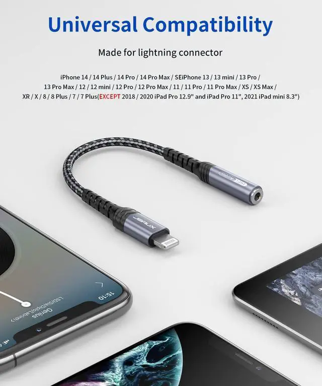 ![Alt view image 2 of 7 - Headphone Adapter for iPhone Lightning to 3.5mm Adapter [Apple MFi Certified] Compatible with iPhone 14 Pro Max/14 Plus/13 12 11 Pro Max/SE/XS-Gray](https://c1.neweggimages.com/productimage/nb640/C6EHD26042308PT51D7.jpg)