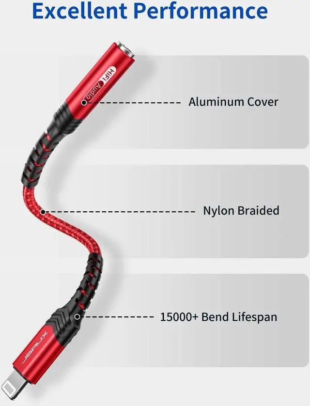 ![Alt view image 5 of 7 - Headphone Adapter for iPhone Lightning to 3.5mm Adapter [Apple MFi Certified] Compatible with iPhone 14 Pro Max/14 Plus/13 12 11 Pro Max/SE/XS-Red](https://c1.neweggimages.com/productimage/nb640/ARVFD211019GZLL9.jpg)